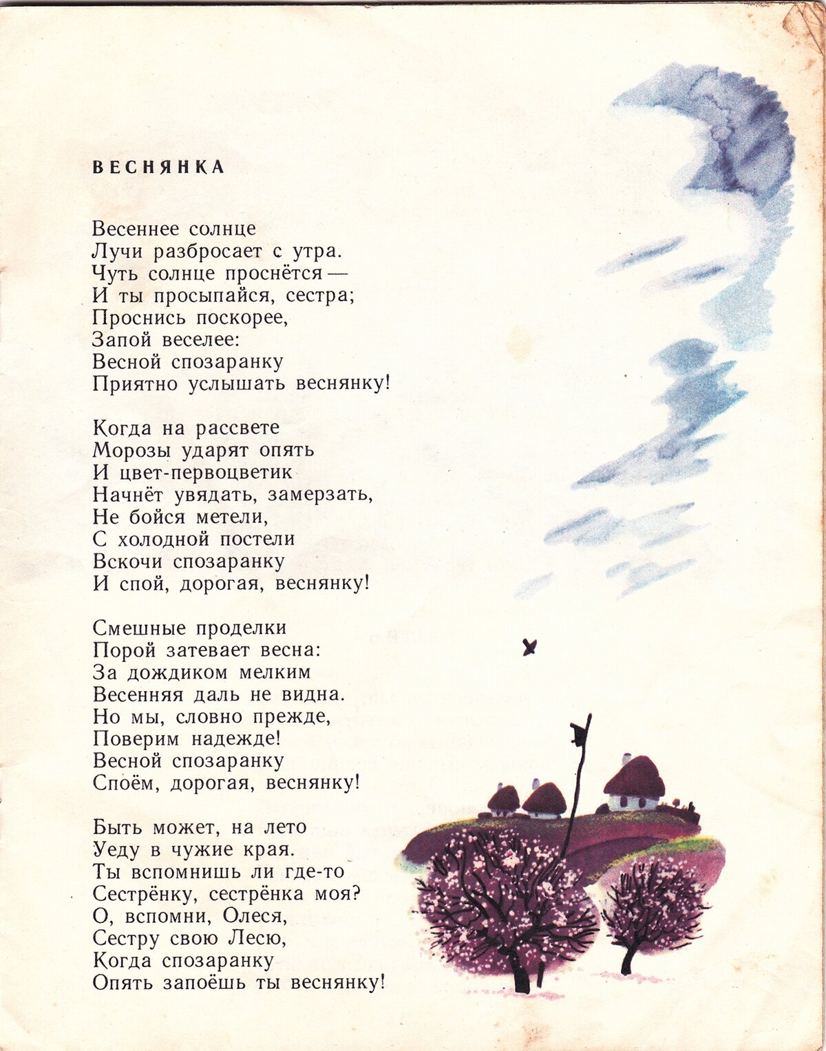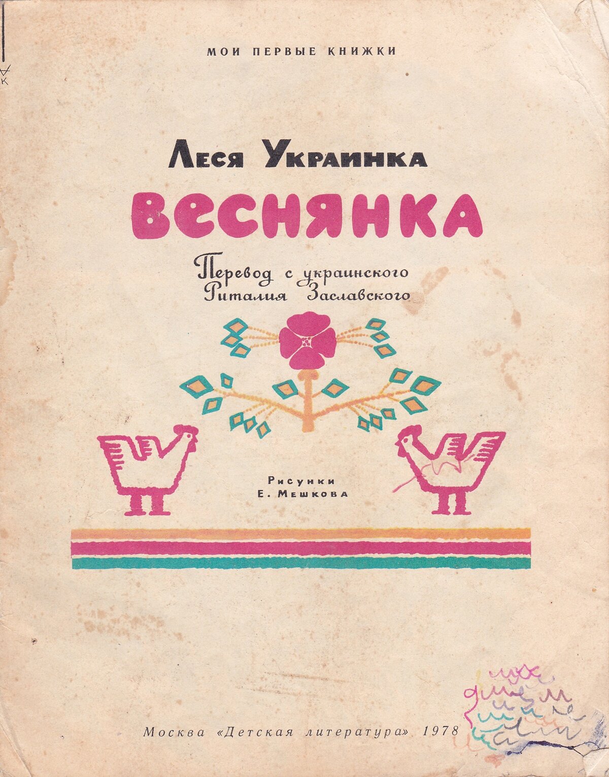 6 Categories: Литература Культура Cancel Веснянка Леся Украинка. (перевод с украинского В. Заславского)Мои первые книжки. (тут реально и мои и первые)Издательство "Детская литература" 1978 год.Художник Е. Мешков.Обложка за временем испарилась... книги